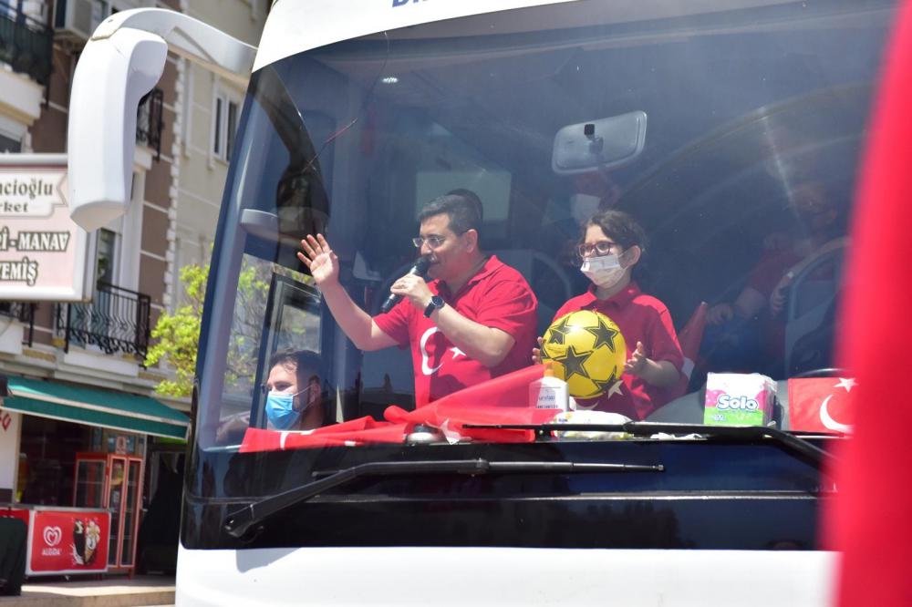Başkan Tütüncü, önce kızı Zeynep Hatice’nin çocuk bayramını kutladı, ardından da kızıyla birlikte otobüse binerek, mahalle mahalle gezdi. Üzerine ay yıldızlı kırmızı tişört giyen Tütüncü, elinde Türk Bayrağı ile Kepezli hemşehrilerinin ve çocukların bayramlarını kutladı. Bayraklar ve rengarenk süslenen konvoy araçlarında çizgi film ve masal karakterlerinin kostümlerini giymiş maskotlar yer aldı. 2 ayrı mobil etkinlik tırındaki canlı müzik performansları ile de Kepezliler evlerinin pencere ve balkonlarında gönüllerince eğlendiler. İlçe sakinleri tarafından al bayraklar ve balonlarla süslenen Kepez’de bayram coşkusu bir başka yaşandı.