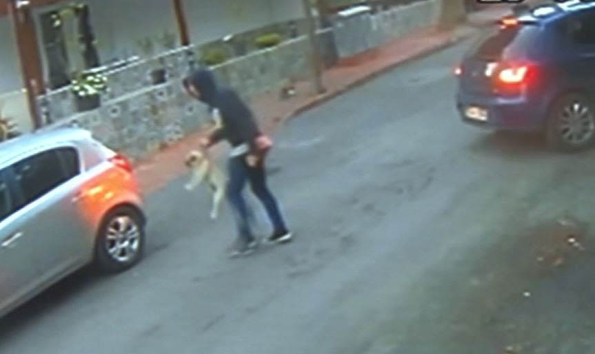 3 yaşındaki Jimmy’nin çalınma anı güvenlik kameralarına saniye saniye yansıdı. Görüntülerde, otel önünde gezen köpeği bir şahsın kayışından tutarak kucağına alıp gitmesi ve bir süre sonra da telefonla uzun süre konuştuğu gözlendi.