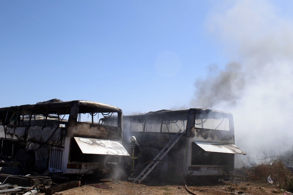 Antalya’da bir turizm firmasının park yerindeki kullanılmayan 4 otobüsü yandı.