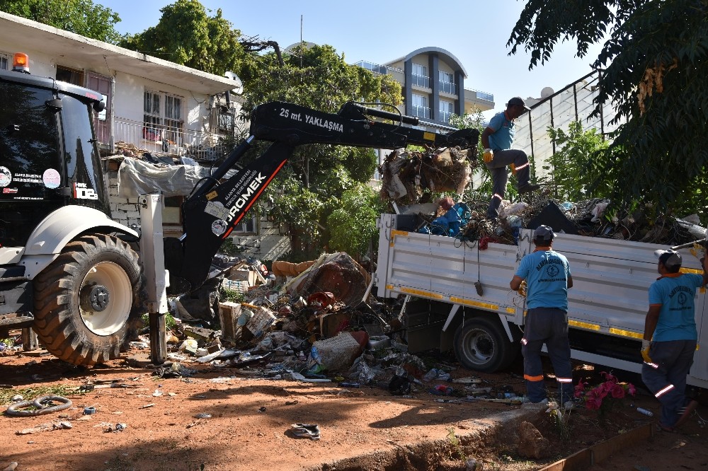 Antalya’nın Alanya ilçesinde görüntü ve çevre kirliliğine yol açan hurda malzemelerin bulunduğu 5 çöp ev boşaltıldı. Ekipler, 5 evden 38 kamyon dolusu çöp çıkardı.