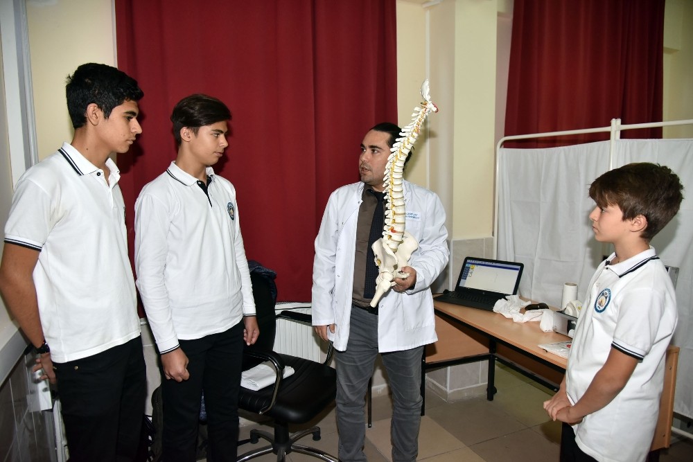 Liselerde geniş kapsamlı sağlık taraması yapıldığını aktaran Fizyoterapist Demir, “Bu taramanın diğer taramalardan farkı Spinal Mouse cihazıyla herhangi bir x-ray cihazına maruz kalmadan bir bilgi edinebiliyoruz. Bunu nasıl yapıyoruz? Bu cihaz yardımıyla çeşitli pozisyonlarda omurganın ön, yan ve arkaya eğilirken ölçümlerini alıyoruz ve bu ölçüler bilgisayara aktarılıyor. Bilgisayarda bir yazılım vasıtasıyla her bir omur sekmentinin hareketliliği hakkında bilgi elde ediyoruz. Bu bilgileri değerlendirdikten sonra bir problem görüyorsak bunu aileyle paylaşacağız” ifadelerini kaydetti.