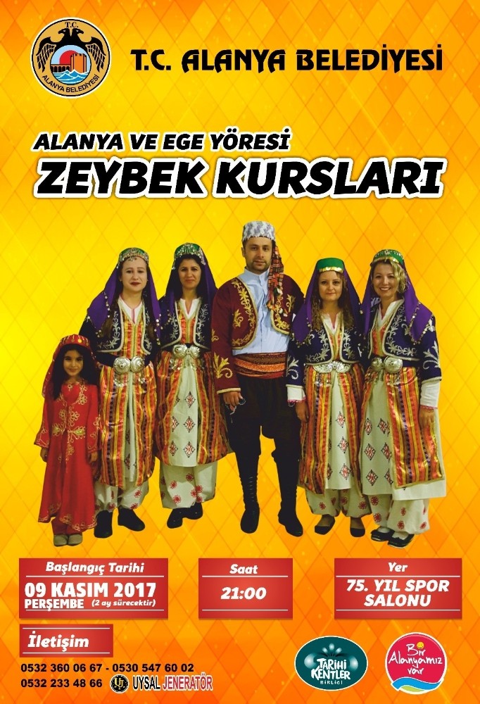 Alanya Belediyesi Spor Müdürlüğü tarafından düzenlenen Alanya ve Ege Yöresi Zeybek Kursları başlıyor.