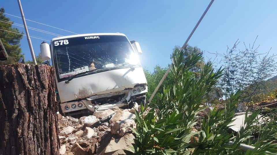Edinilen bilgiye göre, saat 12.00 sıralarında Kumluca-Kemer Karayolu Yazır Mahallesi Olympos mevkisinde Yaşar A. yönetimindeki 07 LOY 30 plakalı tur midibüsü virajlı noktada yoldan çıkıp kayalıklara çarptı. Midibüs, metrelerce yükseklikteki şarampole uçmadan durabildi.
