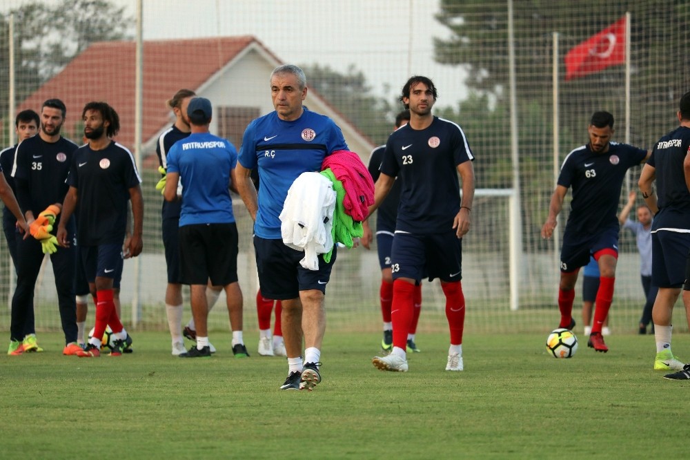 Süper Lig’de 3 haftada 2 puan toplayan Antalyaspor, sahasında oynayacağı Galatasaray maçının hazırlıklarını Atilla Vehbi Konuk Tesisleri’nde sürdürüyor. Teknik Direktör Rıza Çalımbay gözetiminde yapılan antrenman koşuyla başladı. Daha sonra kısa bir süre ısınma hareketleri yapan oyuncular tekrar koşu gerçekleştirdi. Koşunun ardından kondisyon çalışması yapan Antalyasporlu oyuncular antrenmana 5’e 2 ile devam etti. Sonrasında 3 takıma bölünen oyuncular yarı alanda çift kale maç gerçekleştirdi. Yarı alanda yapılan maçta yeşil takımda bulunan Kamerunlu yıldız oyuncu Eto’o ile yardımcı antrenör Bülent Albayrak kolasına iddiaya girdi. Eto’o iddiayı kazanan taraf oldu. Akdeniz ekibi Antalyaspor’da Roma’dan transfer edilen William Vainqueur’de takımıyla ilk antrenmana çıktı. Kırmızı beyazlılarda sakatlıkları bulunan Zeki Yıldırım, Sandro, Mustafa El Kabir antrenmana katılmadı. Sandro bir süre sonra takımdan ayrı yan sahada tek başına çalışırken, Djourou ise İsviçre Milli Takımı’nın kampında olduğu için antrenmana katılmadı.