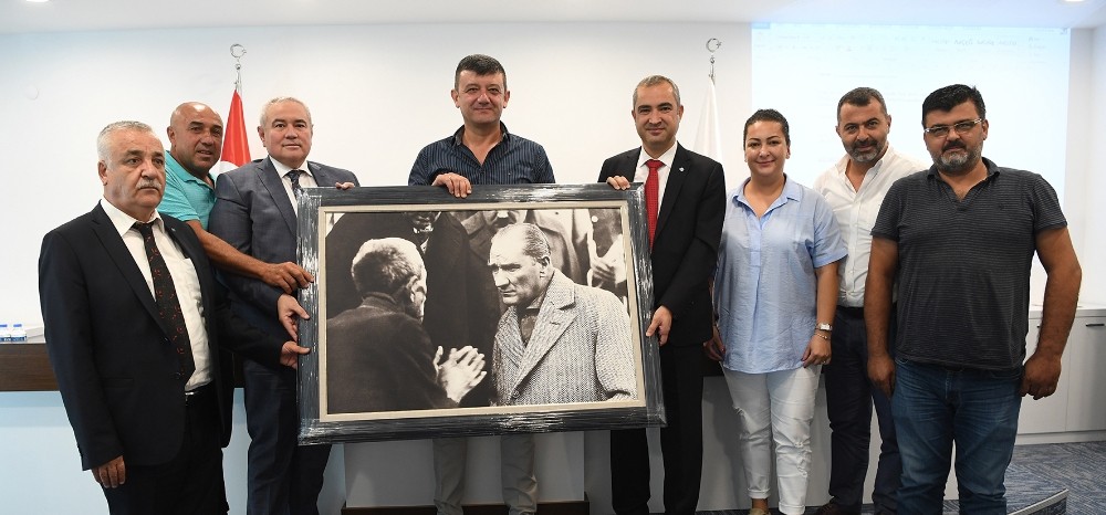 Ziyarette Başkan Davut Çetin tarafından KUTSO hizmet binasında sergilenmek üzere Meclis Başkanı Fahri Özen ve Başkan Murat Hüdavendigar Günay’a Atatürk’ün bir vatandaşla sohbeti sırasında çekilen fotoğrafını hediye etti.