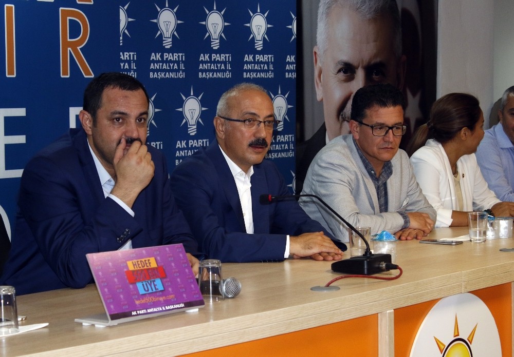 Antalya Ticaret Borsası (ATB) tarafından, Türkiye Odalar ve Borsalar Birliğinin (TOBB) desteğiyle organize edilen ve bu yıl 8’incisi düzenlenen YÖREX fuarının açılışına katılmak için Antalya’ya gelen Kalkınma Bakanı Lütfi Elvan, AK Parti İl Başkanlığında partililerle buluştu.