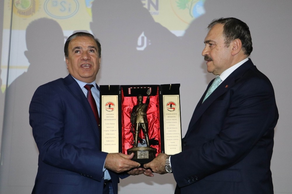 Konuşmaların ardından Bakan Eroğlu’na, Türkiye Sakatlar Konfederasyonu Başkanı Yusuf Çelebi plaket takdim etti.
