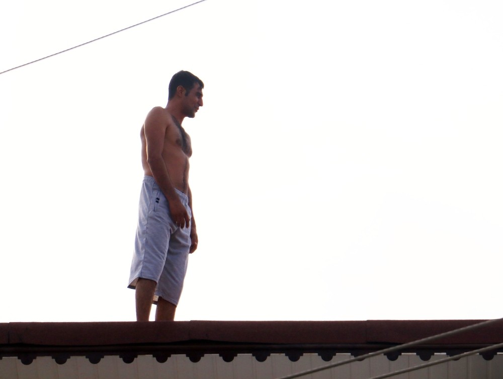 Çatıda üstü çıplak bulunan Hasan Y., polislere ’Götürmeyin beni’ diye seslendi. Olay yerine gelen itfaiye hemen şişme branda açtı. Kepez İlçe Emniyet Müdürlüğü’nde görevli bir polis yaklaşık 20 dakikalık çalışması sonucu Hasan Y.’yi ikna etti. İkinci kattaki evine indirilen şahıs, kıyafetlerini değiştirdikten sonra gözaltına alındı ve cezaevine götürüldü. Tüm uyarılara rağmen intihar girişimini başta çocuklar olmak üzere mahalle sakinleri dikkatle izledi.