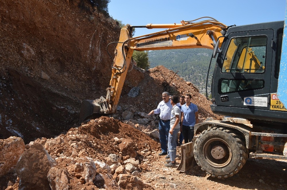 Antalya Büyükşehir Belediyesi Döşemealtı Akkoç Mahalle yolunu asfalta hazırlıyor.