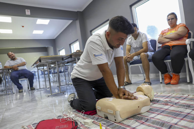 EKDAĞ çalışanları toplamda 16 saat olmak üzere uygulamalı ve teorik olarak ilk yardım eğitimi alıyor.