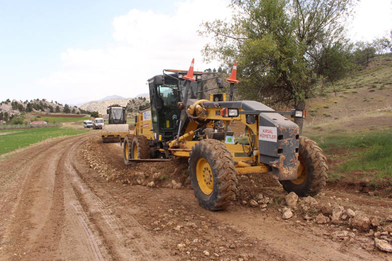 Kırsal Hizmetler Dairesi Başkanlığı alt yapı ekipleri, virajlarda genişletme çalışması yaparken, şarampolleri temizliyor.