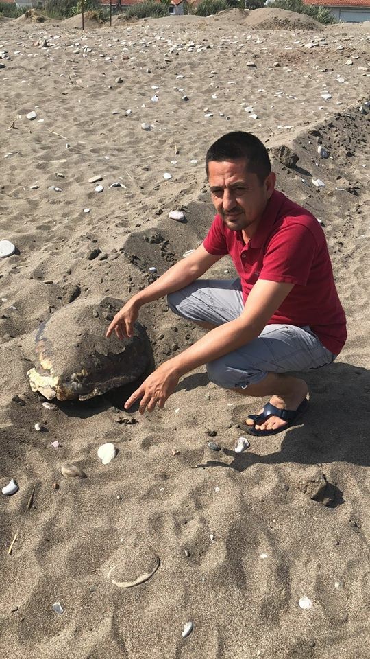 ANTALYA’NIN KUMLUCA İLÇESİ DENİZ OBALARI SAHİLİNDE BAŞI EZİLMİŞ CARETTA CARETTA ÖLÜSÜ BULUNDU.