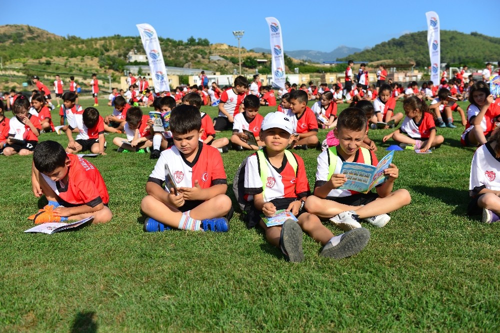 Kumluca yaz spor okullarının açılışında kitap dağıtıldı