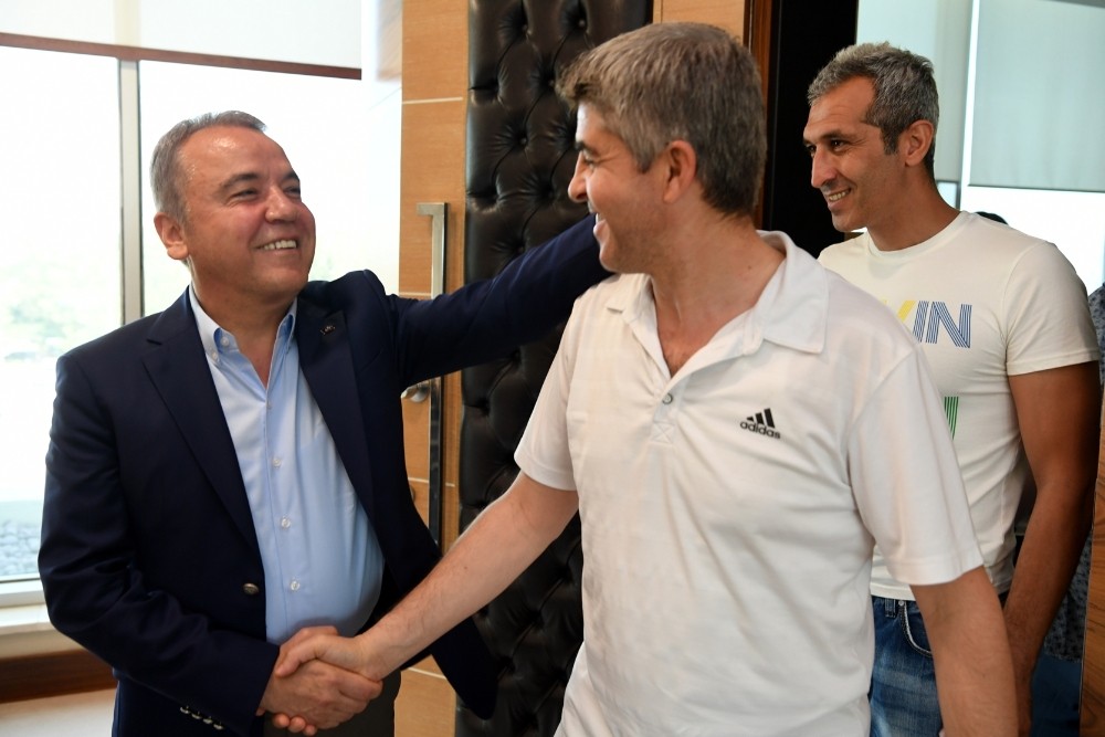 KONYAALTI BELEDİYE BAŞKANI MUHİTTİN BÖCEK ANTALYA SÜPER AMATÖR LİGİ’NDE ŞAMPİYON OLAN KONYAALTI BELEDİYESPORU MAKAMINDA AĞIRLADI.
