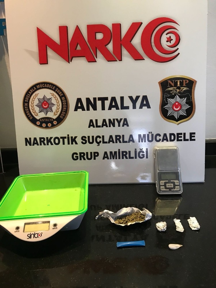 ANTALYA’NIN ALANYA İLÇESİNDE POLİSİN BİR EVE DÜZENLEDİĞİ BASKINDA BİR MİKTAR METAMFETAMİN İLE ESRAR VE 2…