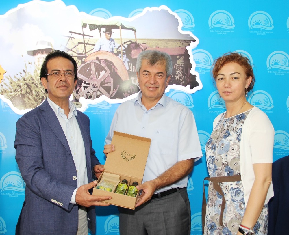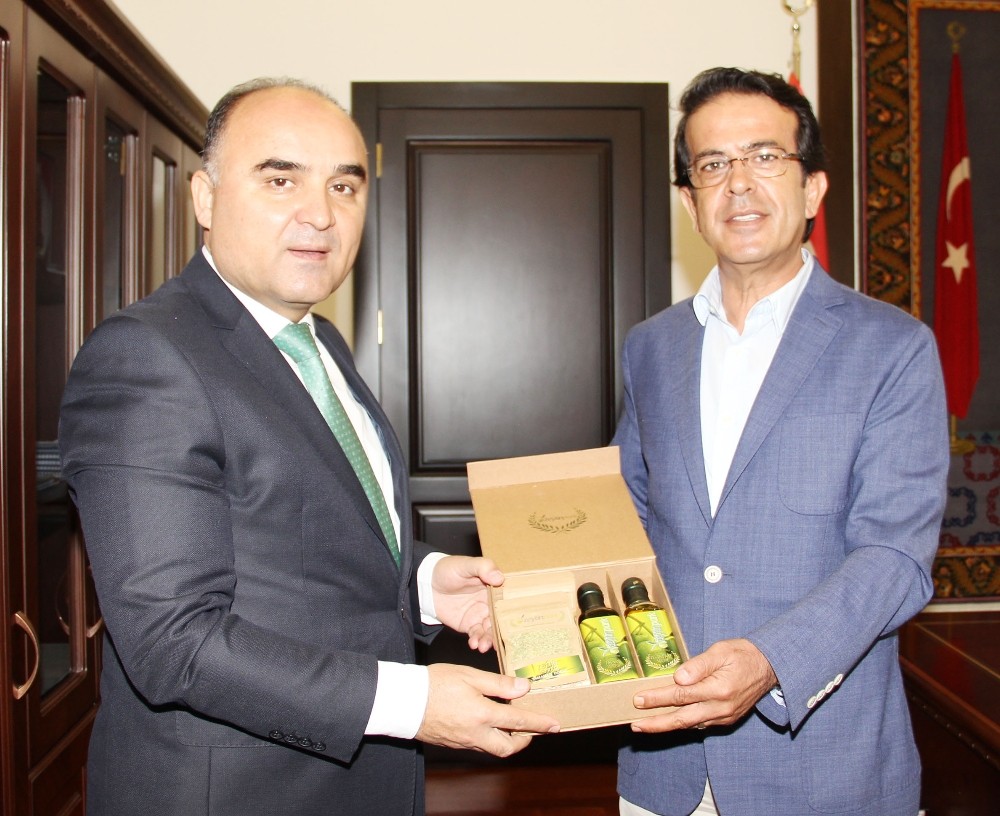 BAGEV Başkanı Çandır, ziyaretlerde Zeytinpark ürünlerinin yer aldığı paket hediye etti.