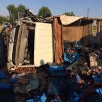 Öte yandan, devrilen kamyonetten yolun kenarına saçılan meyveler de çiftin yakınları tarafından toplandı.