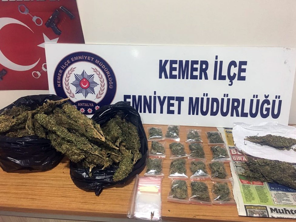 Kemer’de polisin yaptığı operasyonda 2 kişi 1 kilo 500 gram esrar maddesi ile yakalandı.
