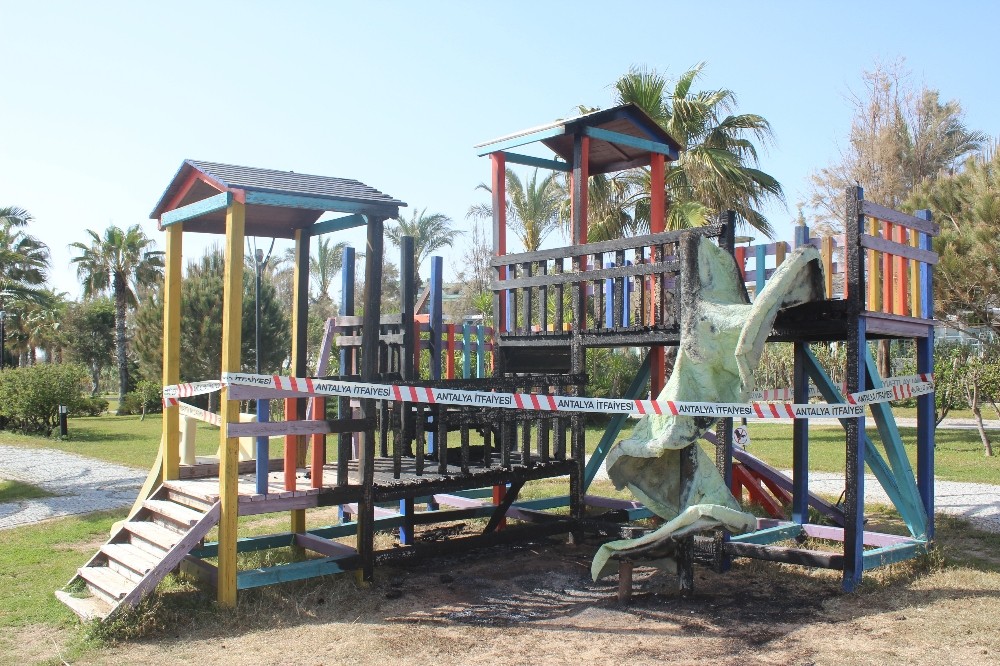 Antalya’nın Manavgat ilçesinde Beachpark’ta bulunan çocuk oyun parkında yangın çıktı. Alevler Antalya Büyükşehir Belediyesi İtfaiye ekiplerince söndürülürken, oyun alanı kullanılamaz hale geldi.