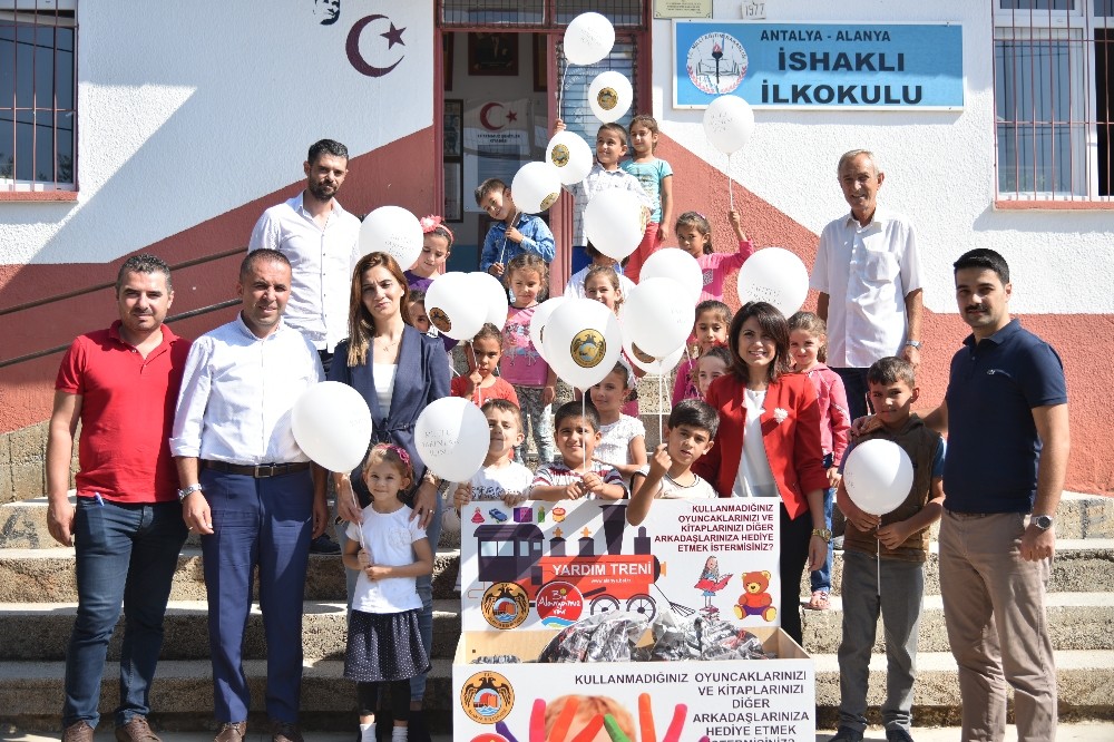 Birinci. 2., 3. ve 4. sınıf öğrencilerine verilen seminerin ardından Alanya Belediyesi Yardım Treni okul önünde durdu. Seminer sonrası Yardım Treni’nde getirilen ayakkabı, kırtasiye malzemeleri, hikaye kitapları, çeşitli yiyecekler İshaklı İlkokulu öğrencilerine hediye edildi.