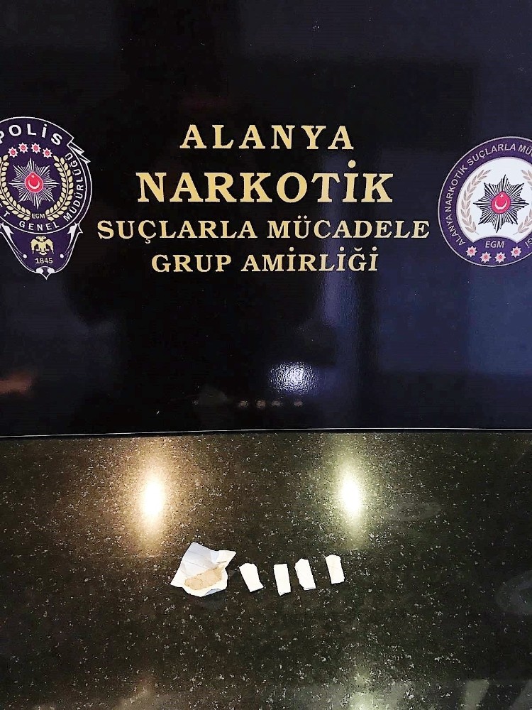 Edinilen bilgiye göre, Dinek Mahallesi D-400 karayolu üzerinde uygulama yapan Alanya İlçe Emniyet Müdürlüğü Narkotik Grup Amirliği ekipleri, sürücüsünün şüpheli tavırlar sergilediği bir otomobili durdurdu. Sürücü M.K.’nın üzerinde arama yapan polis, naylon poşet içerisinde 5 parça halinde bir miktar eroin maddesi ele geçirdi. Gözaltına alınan M. K.’nın emniyetteki işlemleri sürüyor.