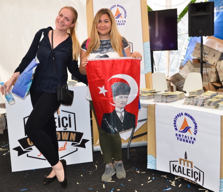 Marina Katakytsev ve arkadaşı Natalia Polyakov üzerinde Atatürk’ün fotoğrafının bulunduğu Türk Bayrağı ile Muratpaşa Belediyesi standını ziyaret etti. Katakytsev, Antalya’da kendini çok özgür hissettiğini belirterek, Mayıs ayında Antalya’da hem kendi ülkesinin 9 Mayıs Zafer Bayramı’nı hem de sonrasında 19 Mayıs Atatürk’ü Anma ve Gençlik Spor Bayramı’nı kutladığı söyledi.