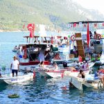 Antalya’nın Kumluca ilçesinde bu yıl ikincisi düzenlenen Mavikent Karaöz deniz şenliği ve Kabotaj Bayramı kapsamında Yağlı Direkten Bayrak Alma Yarışması düzenlendi.
